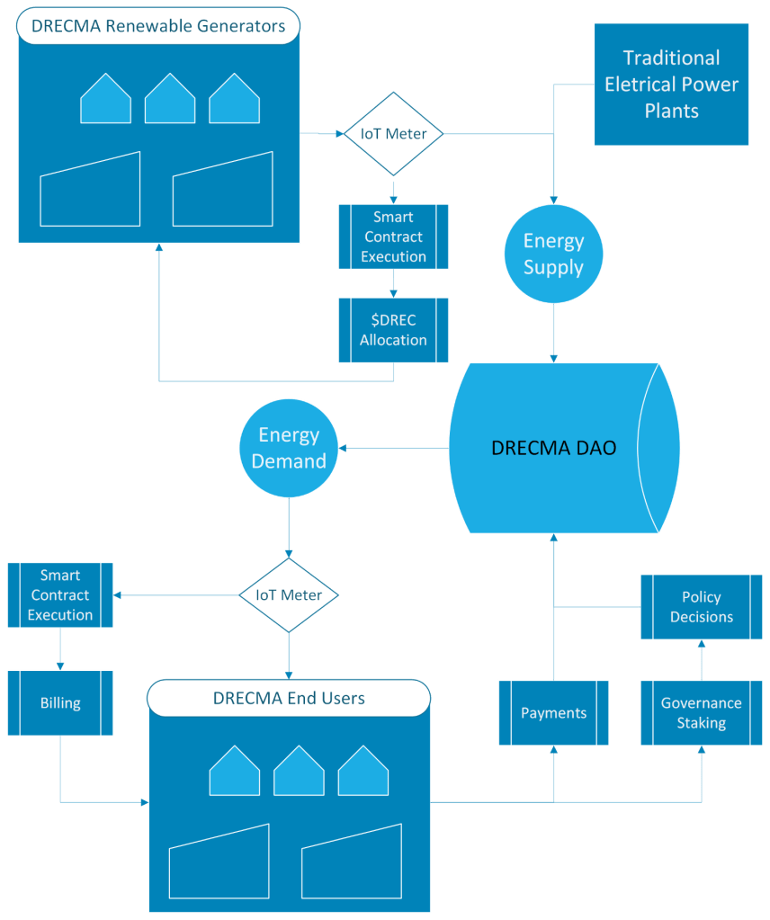 - Token supply will be facilitated by smart contracts to mint $DREC when members produce renewable energy.
